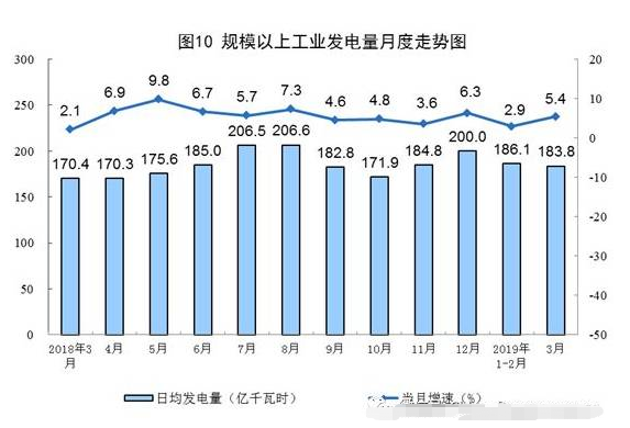 4月17日,國家統計發布數據顯示,3月份,發電5697.9億千瓦時,日均發電183.8億千瓦時,同比增長5.4%,增速比1—2月份加快2.5個百分點。1季度,發電16747.4億千瓦時,同比增長4.2%,增速比去年同期回落3.8個百分點。