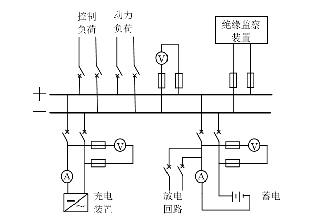 1. 蓄電池、充電機、直流母線、絕緣監察裝置、饋出負荷。